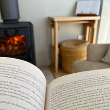 2 armchairs, coffee table + wood fire (firewood, matches + firelighters provided) + desk & chair